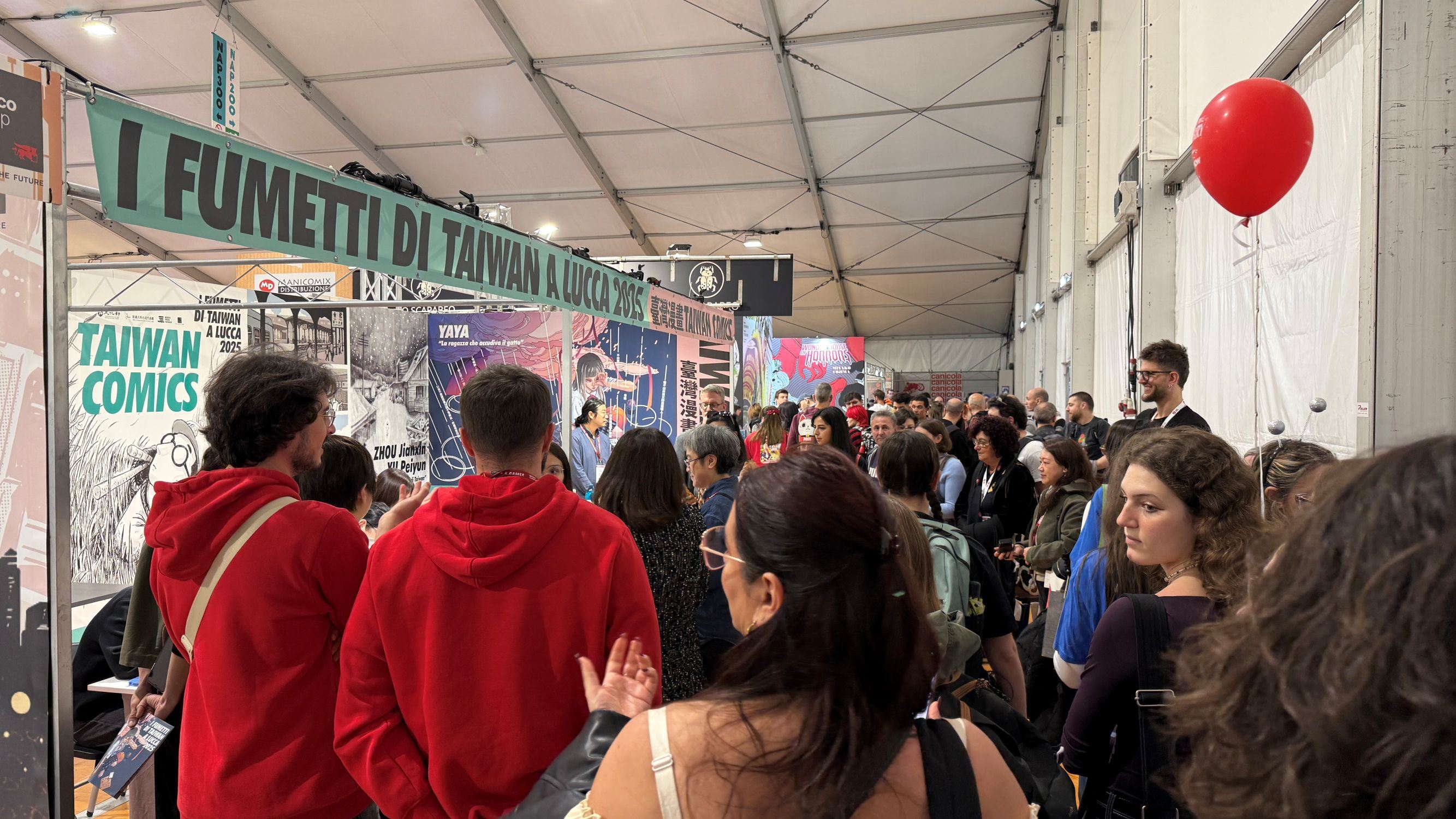 文化部駐義大利代表處文化組與大塊文化合作策劃,連續第4年參與歐洲最大漫畫盛會義大利「盧卡國際漫畫節」(Lucca Comics & Games),於當地時間10月29日至11月2日,連續5天在南義盧卡舉行。今年臺灣館以「Taiwan Comics:2025臺灣漫畫在盧卡」為題,延續去年首度進入主展場設館成功經驗,今年擴大參展規模,邀請漫畫家《來自清水的孩子》作者周見信與游珮芸、《餵貓的女孩》作者YaYa、《大貓族再見廟東》作者阿寶灰灰,以及目前在歐洲駐村漫畫家劉倩帆等5位臺灣創作者親抵現場,以各特色原創作品與義大利書迷交流,展現臺灣漫畫豐富文化與跨語系市場延展潛力。