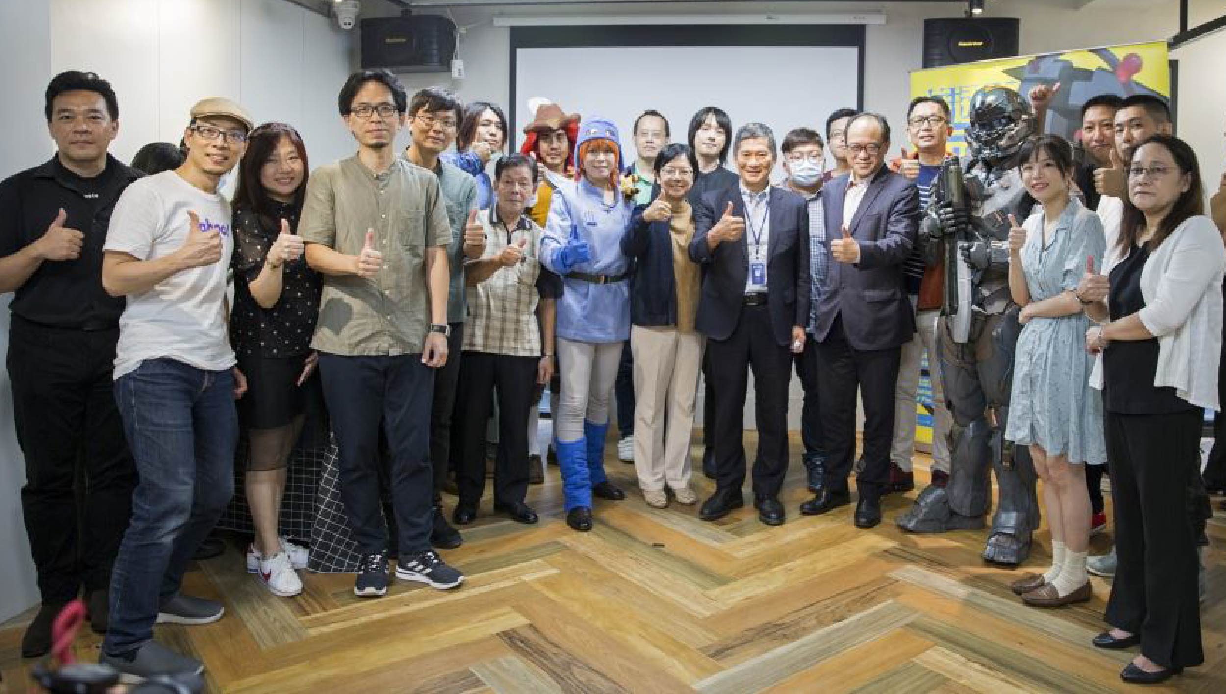 ▲文化部長李永得(中)、人文及出版司副司長朱砡瑩(左2)、國立臺灣美術館長林志明、策展人羅禾淋(左1)及Coser們合影。)