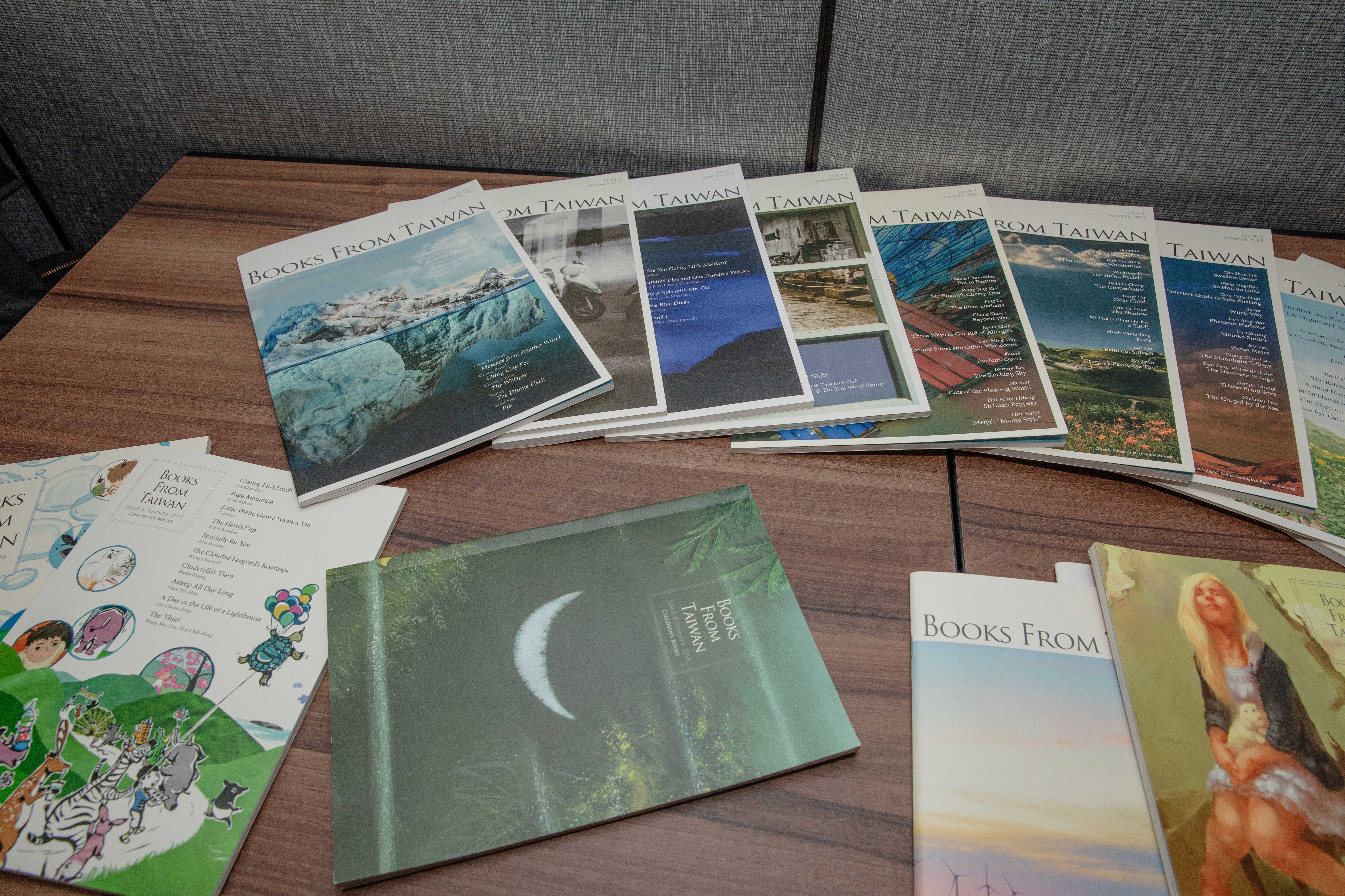 ▲歷年的 Books From Taiwan 專刊,10 年來向國際出版版權市場介紹過近 500 本臺灣書籍。(文策院/提供)