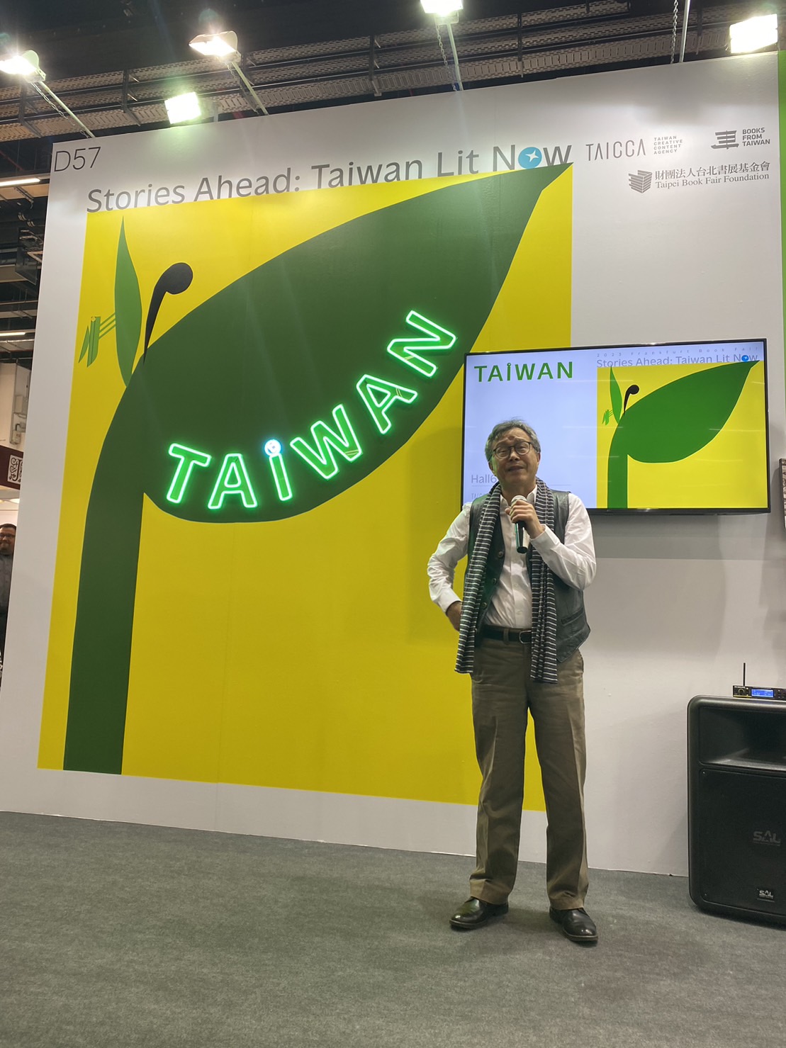 法蘭克福書展臺灣館的開幕酒會與作家朗讀會,在書展首日 10 月 18 日舉辦,邀請各國書展代表、國際出版專業人士相聚。駐德國臺北代表處大使謝志偉現場致詞表示,持續保有好奇心,不斷閱讀能充實生活與心靈,台灣這個小島上擁有多元且自由的聲音,擁有許多不同主題的書寫,期待在書展的參與能夠讓大家看到更多來自台灣的好故事。