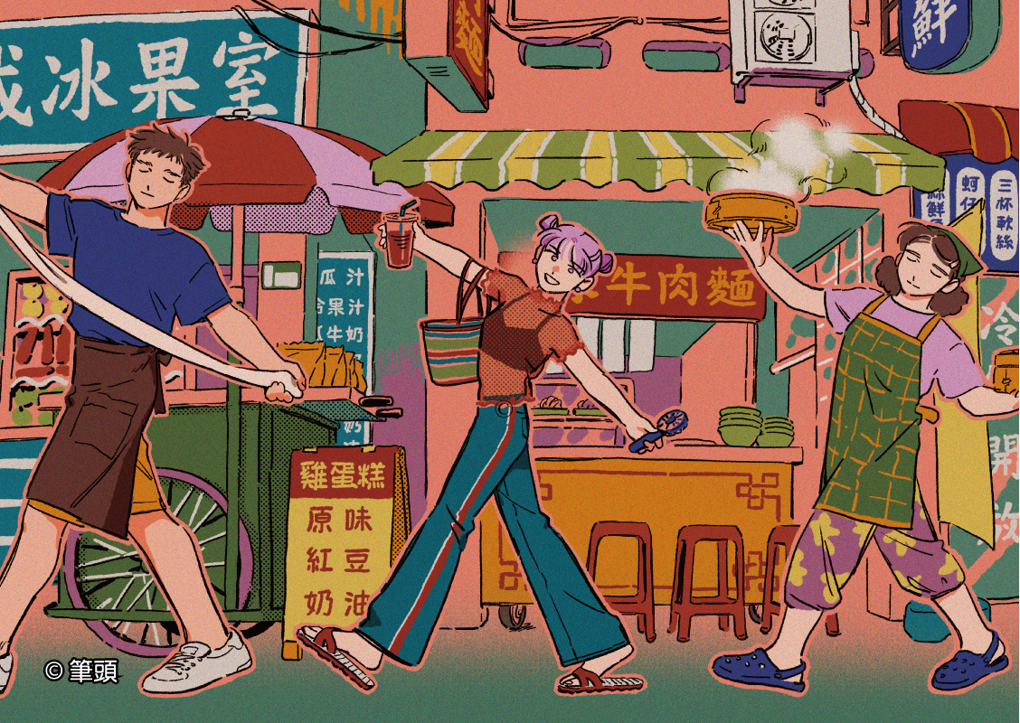 ▲臺灣漫畫家 Gene、HOM 及筆頭老師以臺灣特色文化「市場」為靈感繪製的精彩插畫,將分別在三家書店展示。(圖為筆頭繪製)