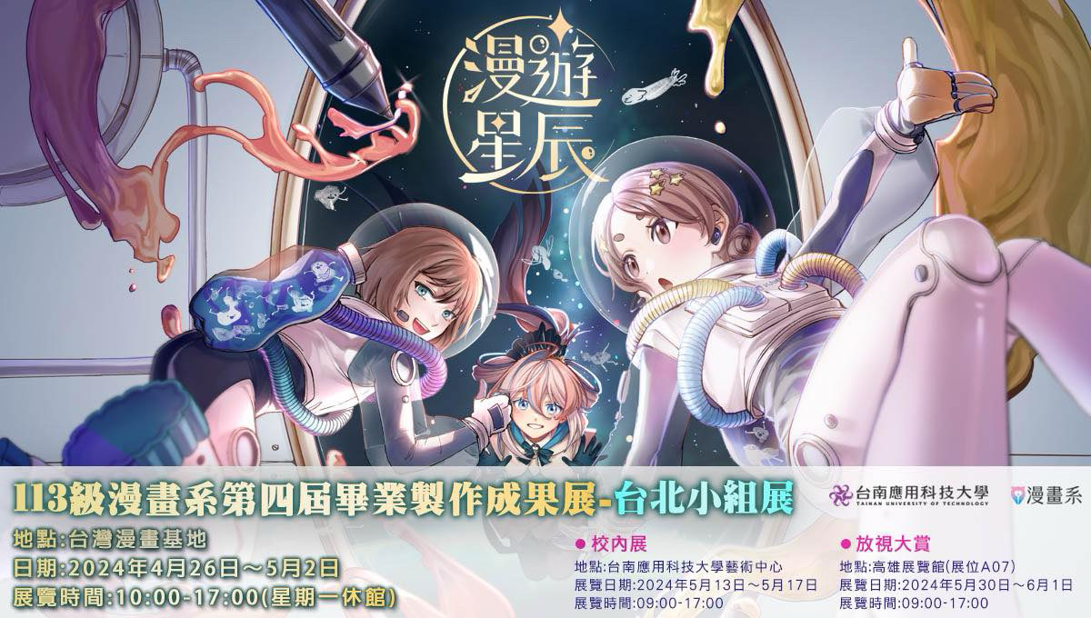漫畫系第五屆畢業展 即將開展! 畢業季來臨,漫畫系第五屆畢業成果展即將登場!展覽將於北、中、南四地舉行,分別在台中動漫節、臺灣漫畫基地、台南應用科技大學藝術中心及高雄放視大賞南館。