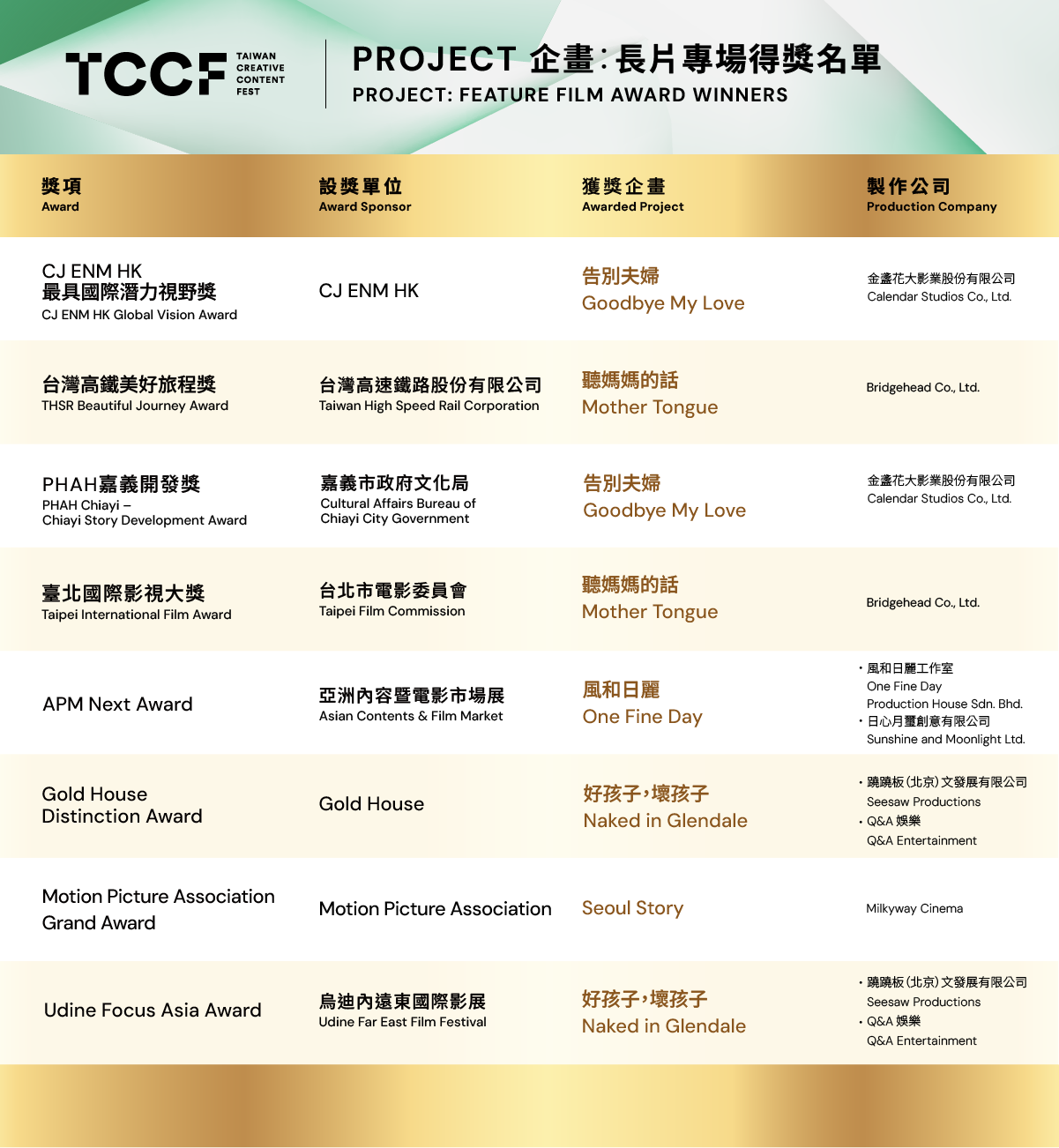 ▲2025 TCCF PITCHING提案大會_Project企劃:長片專場得獎名單