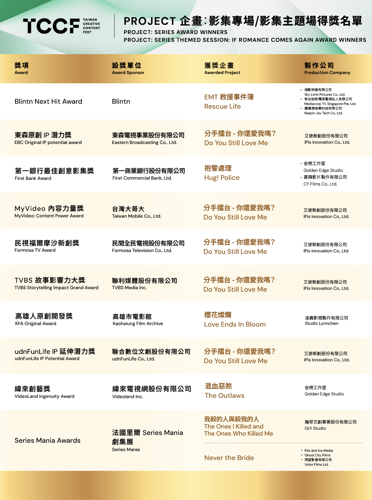 ▲2025 TCCF PITCHING提案大會_Project企劃:影集專場得獎名單