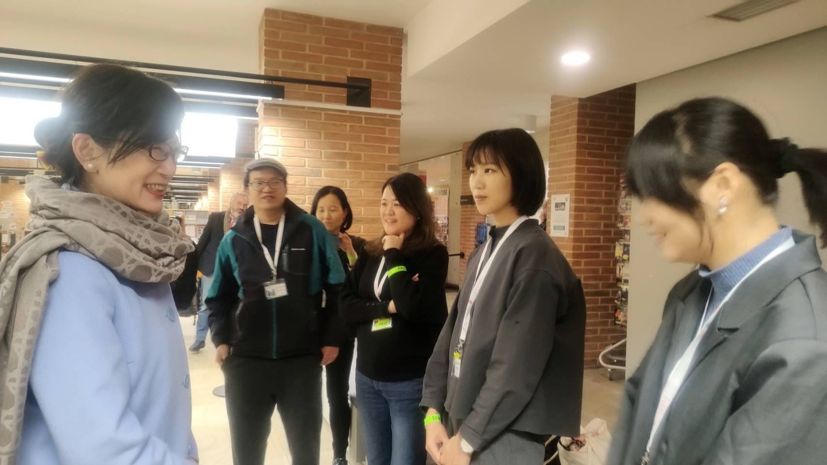 ▲(左起)駐法大使郝培芝感謝參與的臺灣漫畫家葉長青、林莉菁、陳沛珛等。(巴文中心提供)