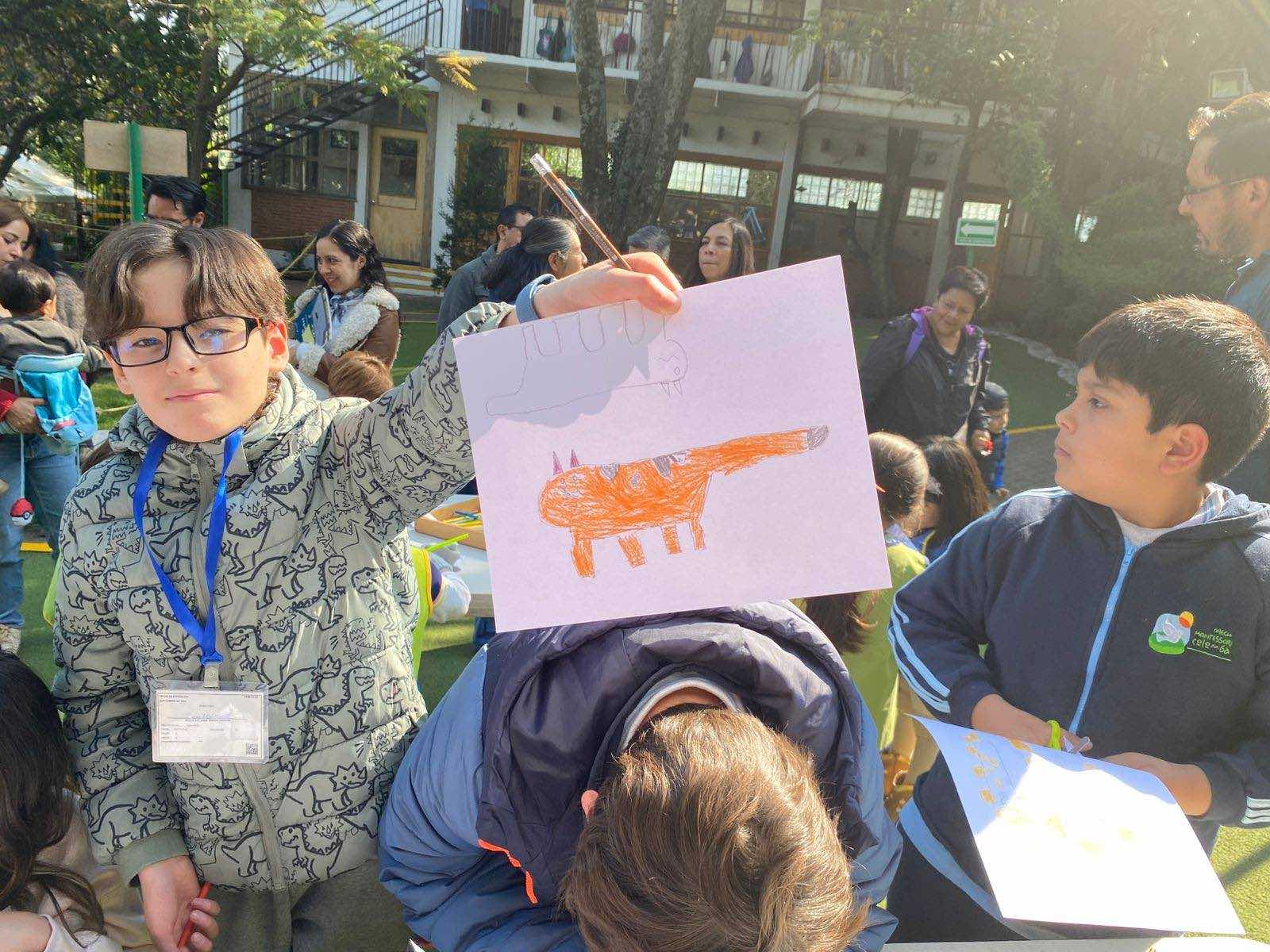 ▲薛慧瑩在當地學校帶領工作坊,與小朋友一起製作貓咪書籤。