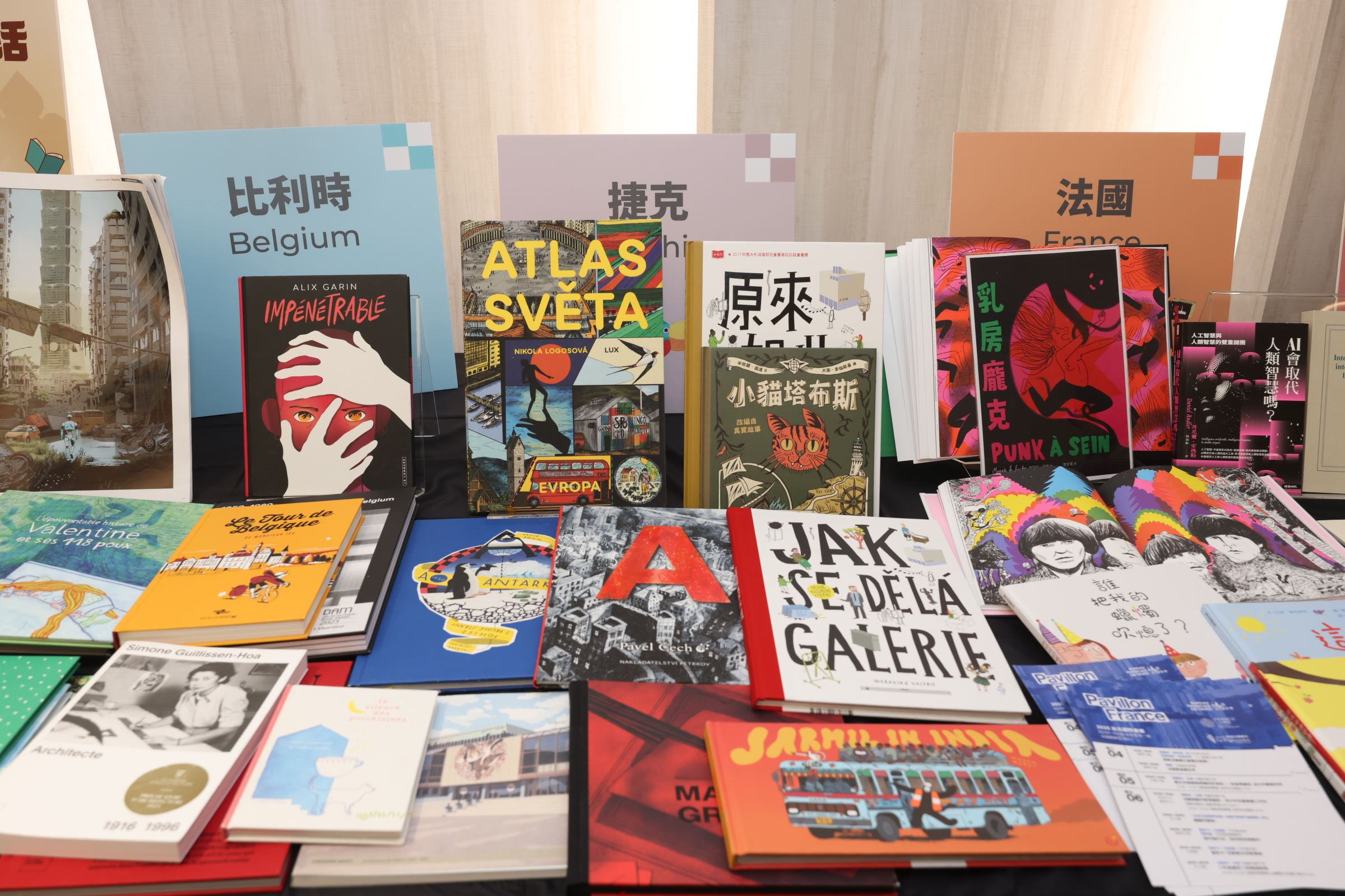 比利時館由比利時法語文化區國際關係總署(Wallonie-Bruxelles International, WBI)攜手比利時台北辦事處瓦隆尼亞區經貿組共同策畫,展出內容涵蓋文學小說、非小說、童書與繪本,展品橫跨不同世代與閱讀族群,勾勒出比利時法語出版在歐洲文化版圖中的獨特位置與長期累積的創作深度。