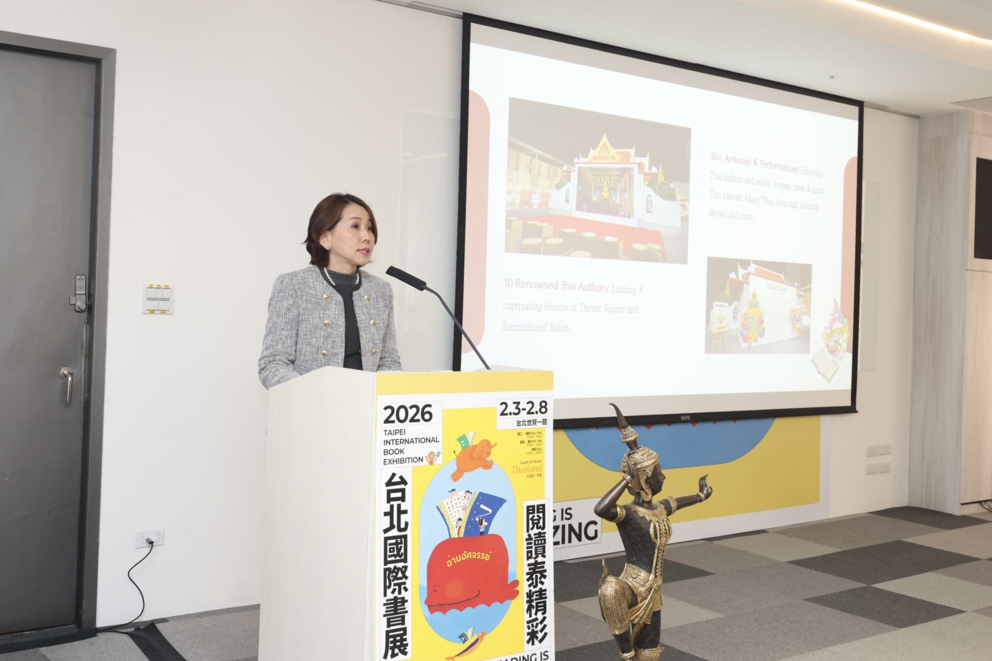 ▲泰國商務處處長李凱莉表示,作為2026台北國際書展主題國,除展出小說、童書、漫畫、BL和GL、歷史、政治等多元類型作品,也將舉辦作家座談、飲食分享、泰拳展演、泰語與文化入門體驗,傳遞道地的泰式創意生活。