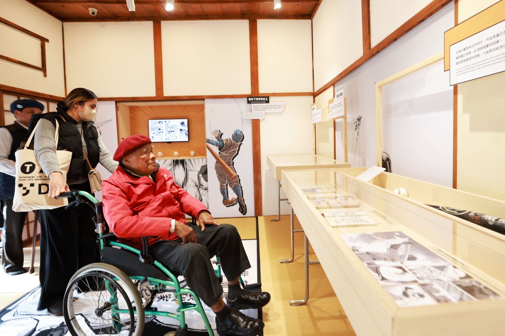 ▲漫畫家劉興欽出席力挺臺漫,參觀「壘上有人:臺灣棒球漫畫的全力一擊」特展。