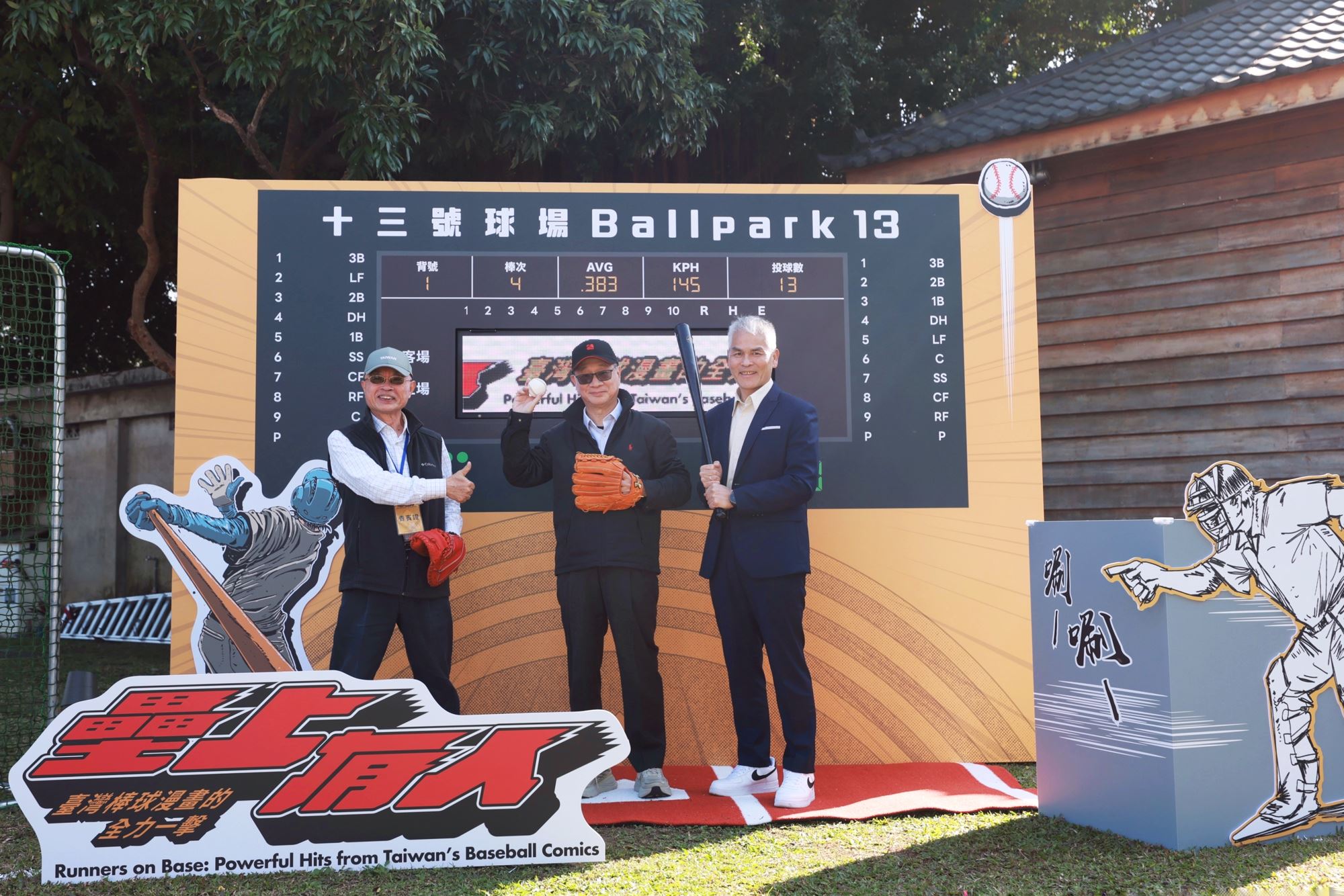 ▲「壘上有人: 臺灣棒球漫畫的全力一擊」特展開幕,文化部長李遠、運動部政務次長黃啟煌、