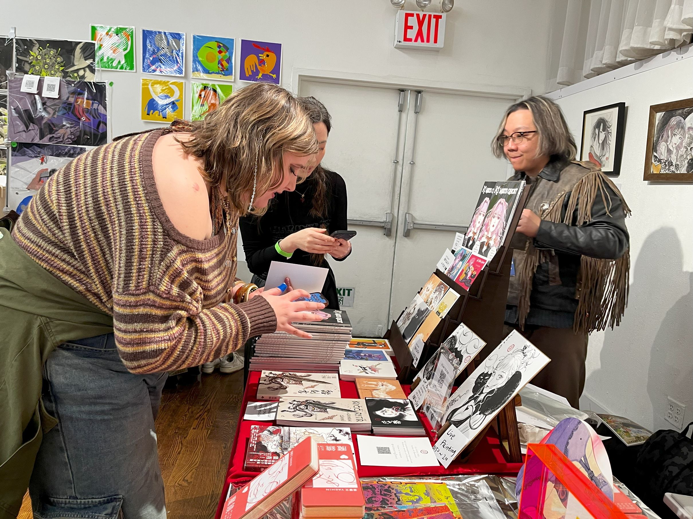 葉馨文以細膩線條與帶有科幻氛圍的視覺語言,打造屬於新世代的漫畫表現形式。本次展出作品更突破書籍形式的既定想像:《魔鏡》將書籍設計為手機造型,探討女性在社群媒體環境下的容貌焦慮;《證據》則採風琴頁裝幀,呈現性犯罪案件中對受害者的指責與社會凝視。她表示,觀眾對作品在「書的形式」上的創新表現尤為驚艷,亦對其所觸及的議題產生深刻共鳴。此外,她亦受邀參與漫畫投影朗讀活動,藝術家以近似脫口秀的方式詮釋作品,為創作帶來嶄新的展演可能。