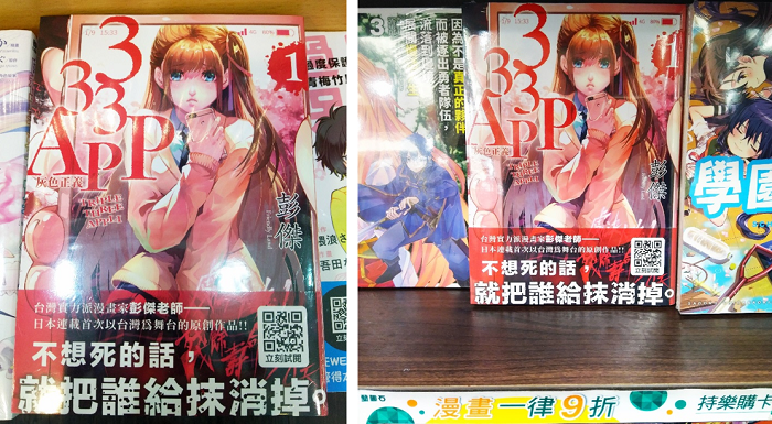 ▲《333APP灰色正義》繁中版第1集封面、右:安利美特台北店特設展售專櫃。