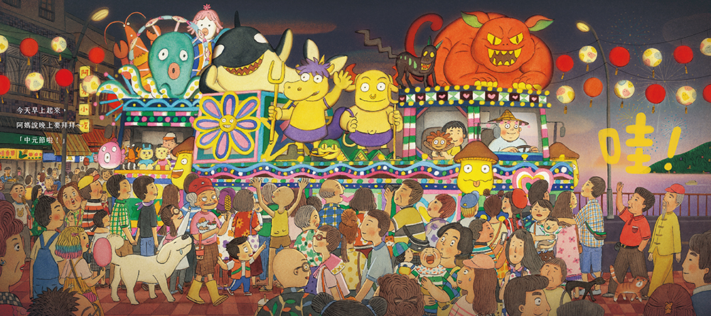 ▲「以兒童天真之眼,揭開台灣鄉土的繽紛、神秘面紗,親切有味。全書色調飽滿、構圖疏稠有致,刻畫家常與愛。」───作家|廖玉蕙